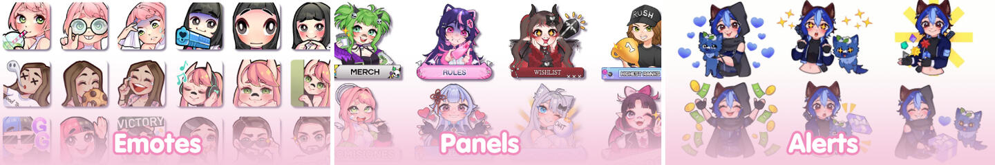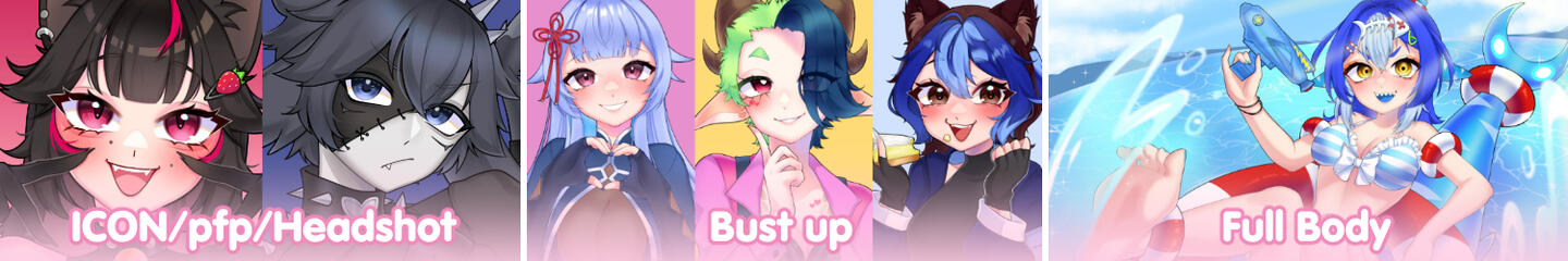COMMISSION PROCESSHere’s a more detailed explanation of how my commission process works.O1) You can check out my services and order through VGenO2) Once I accept your request you’ll be added to my “Waiting Queue” where VGen will notify you when I start working on your piece ^^. You can check it in more detail hereO3) When I begin your commission I’ll send you a quick sketch of the overall idea with base colors, for multiple artworks like panels/emotes/etc... only the first drawing will be colored. Since it’s a sketch it won’t include all of your character’s elements or accessories (I usually just mark where things go) but I’ll make that clear in the message! Remember that in this stage you can request changes to the pose or colors.O4) After confirming the sketch and applying changes if needed, I’ll send another update with the lineart and flat colors, at this stage I can still make minor adjustments and tweak colors if you’d like ^^O5) Once the artwork is fully rendered, I’ll send you an update letting you know it’s done and upload the downloadable files through VGen!EXTRAS✖︎ Skeb/“Surprise me!” sketches don’t include progress updates but I can fix small details I might have missed once they’re done ^^
